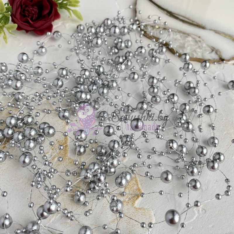 Бусинки на леске, серебристый