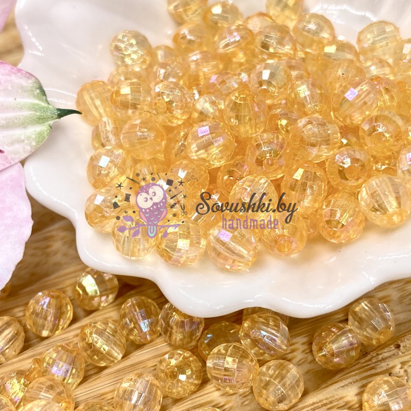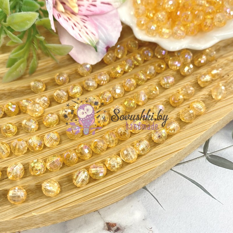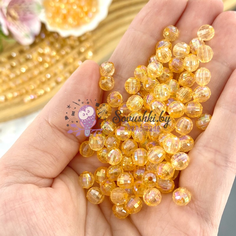 Акриловые граненые бусины 6 мм с переливом, оранжевый (10 гр ~ 92 шт)