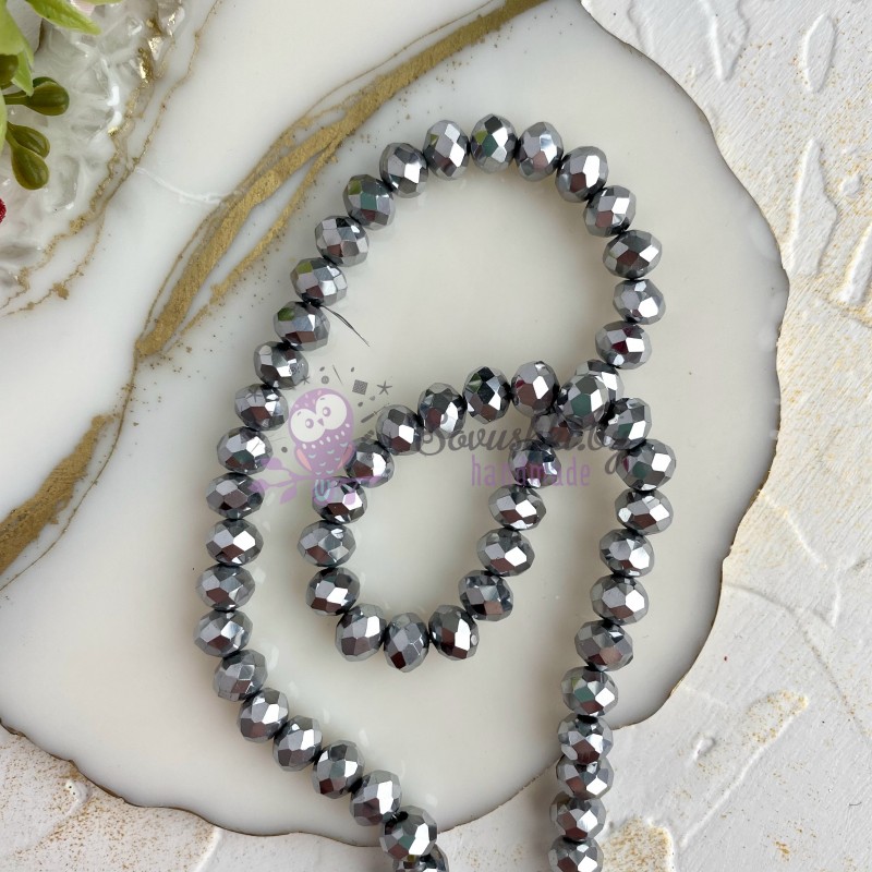 Бусины стеклянные "Rondellе", серебро (d=4 мм упаковка/8 шт)