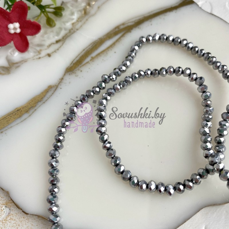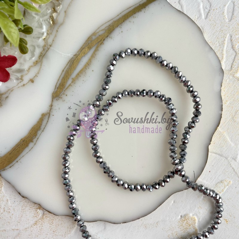 Бусины стеклянные "Rondellе", серый (d=4 мм и 6 мм/упаковка)