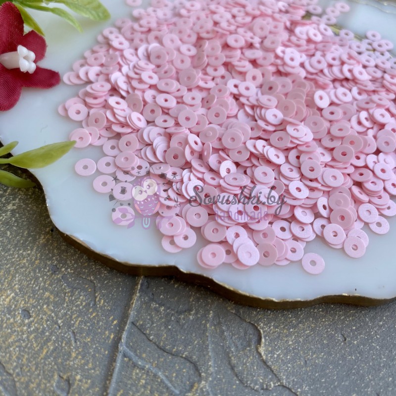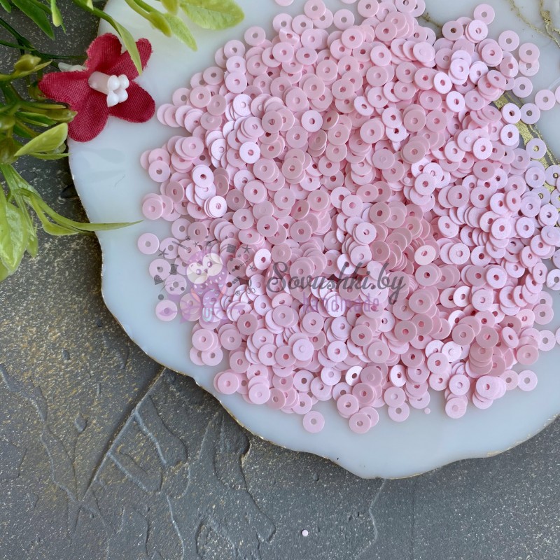 Пайетки круглые 4 мм (10 гр), нежно-розовый