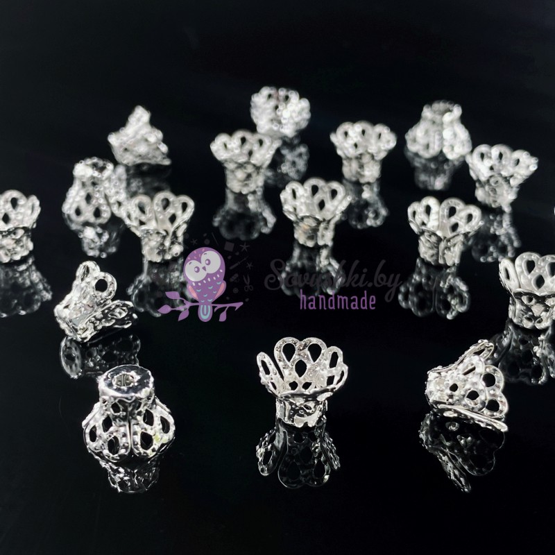 Шапочки для бусин d = 8 мм ШС-545, серебро (упаковка 50 шт)
