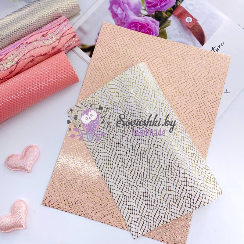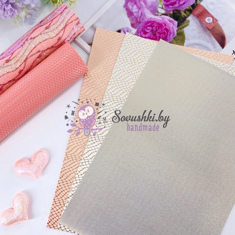 В наборе 3 листа декоративного кожзама:1 лист бежевая лаковая экокожа (21х29,5 см)1 лист кожзам с на..