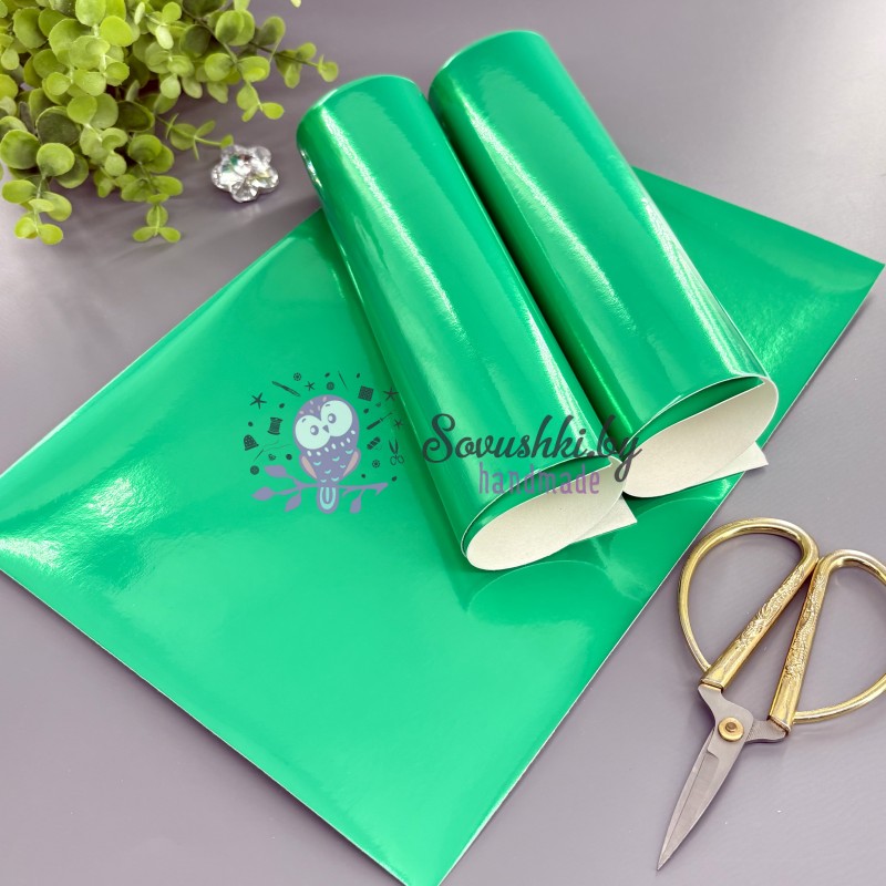 Кожзам однотонный глянцевый (зеркальный) зеленый