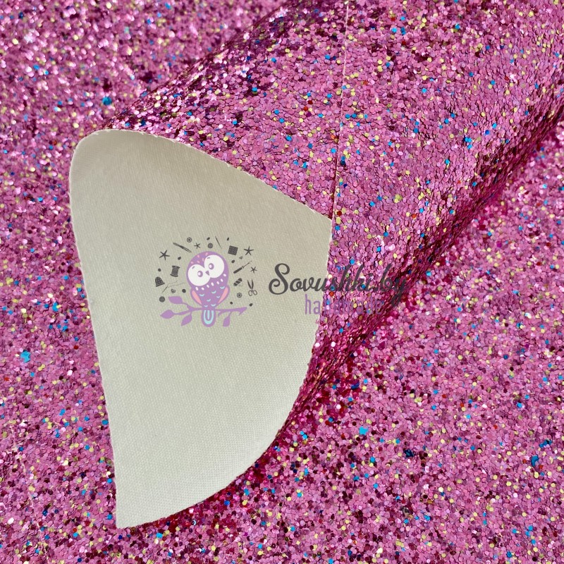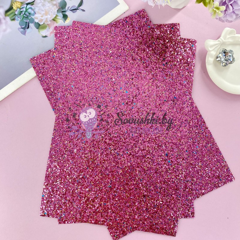 Кожзам с крупными блестками "Конфетти", темно-розовый