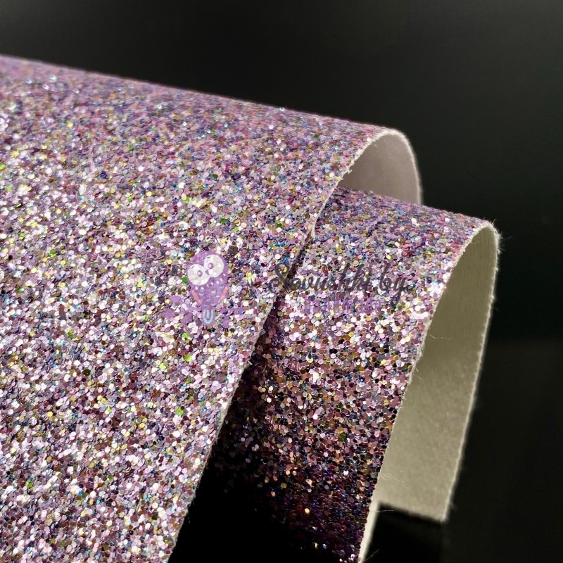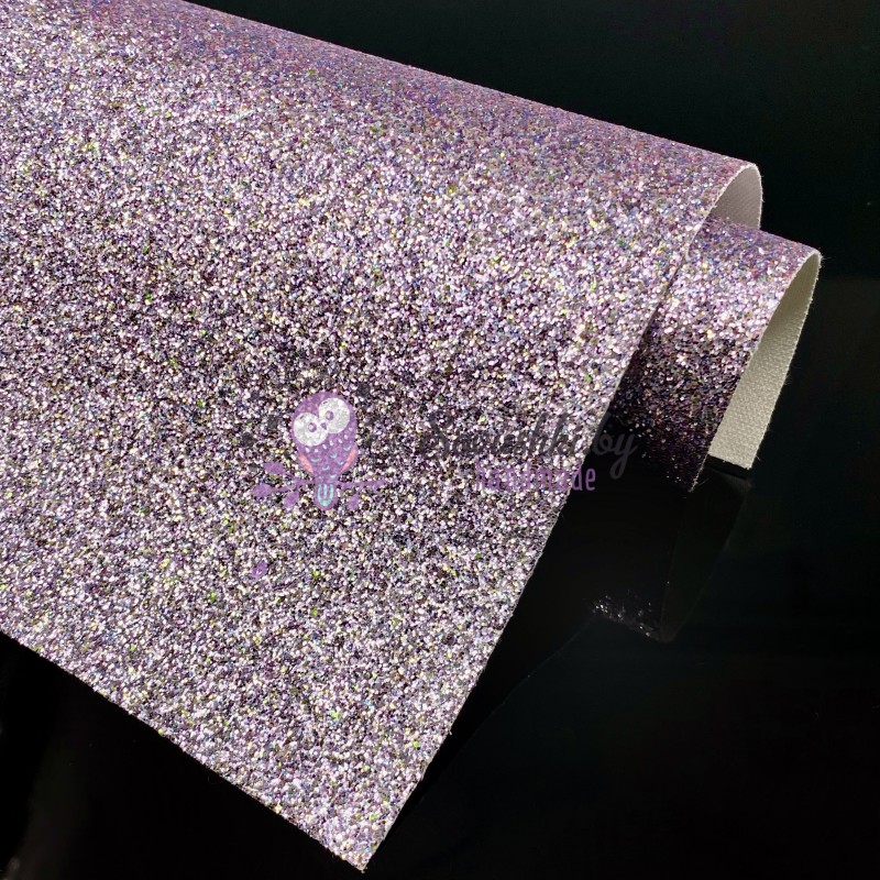 Декоративный кожзам средний глиттер "Exclusive", бледно-сиреневый