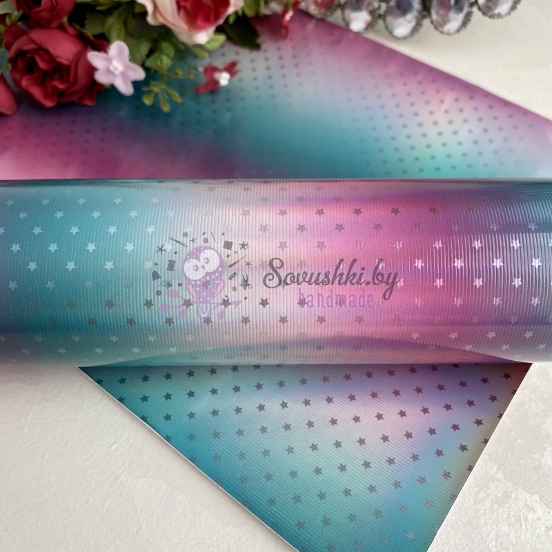 Декоративный кожзам голографик с переходом цвета "Звездочки" (4)