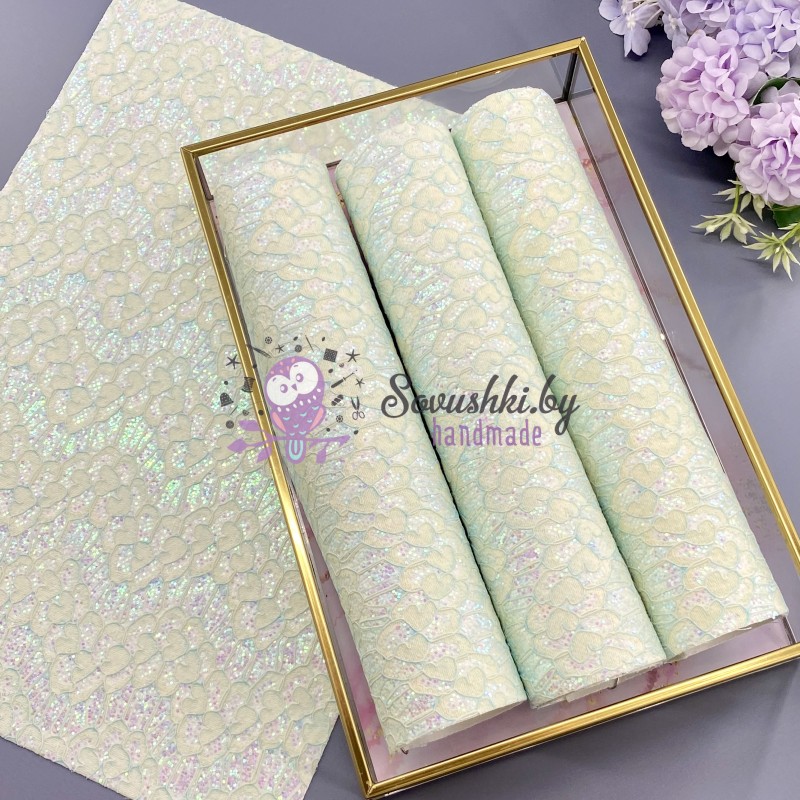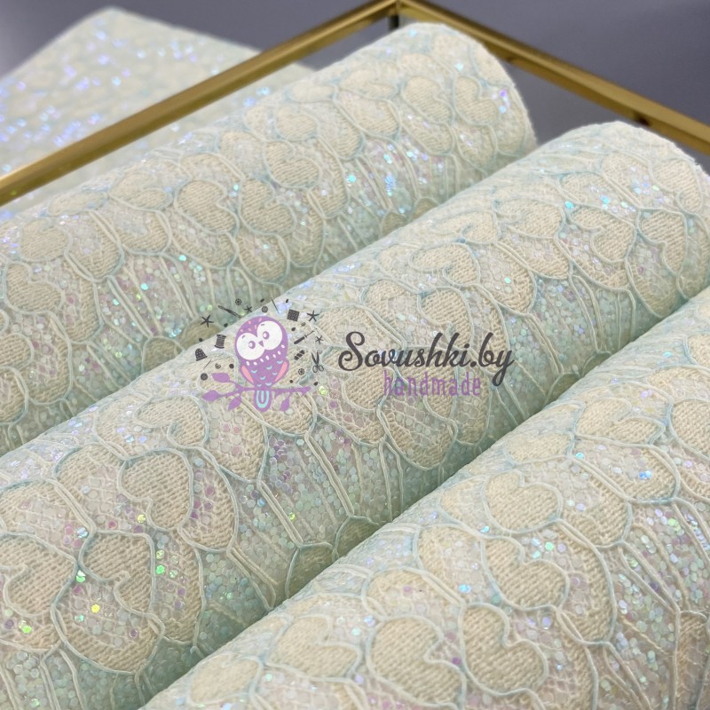 Декоративный кожзам с узором "Кружево", светло-аквамариновый