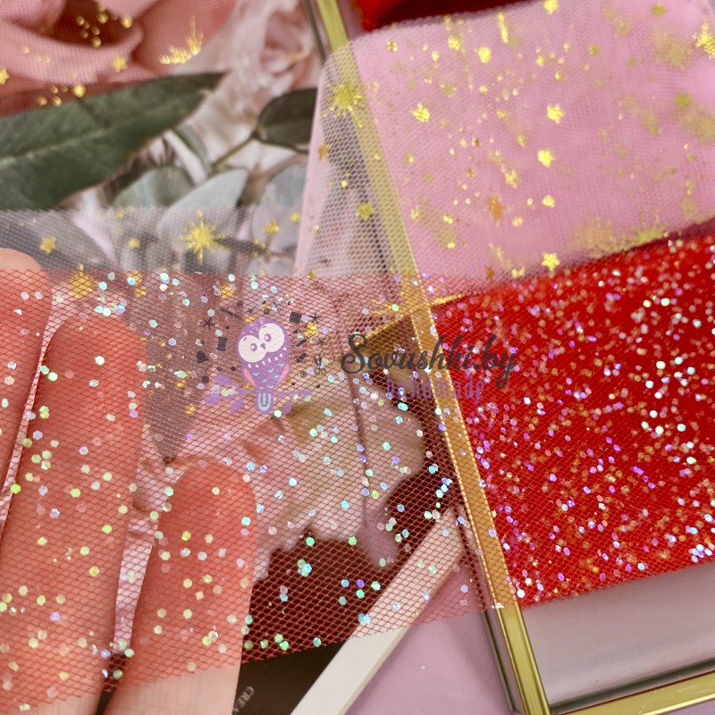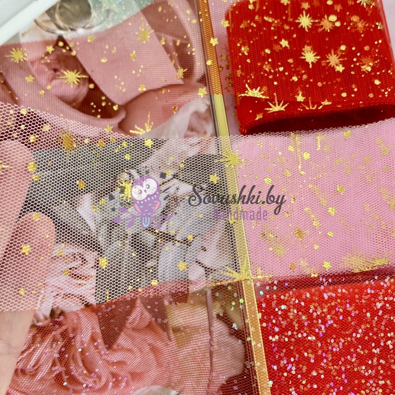 Фатин 5,5 см "Звёздочки", нежно-розовый/золото