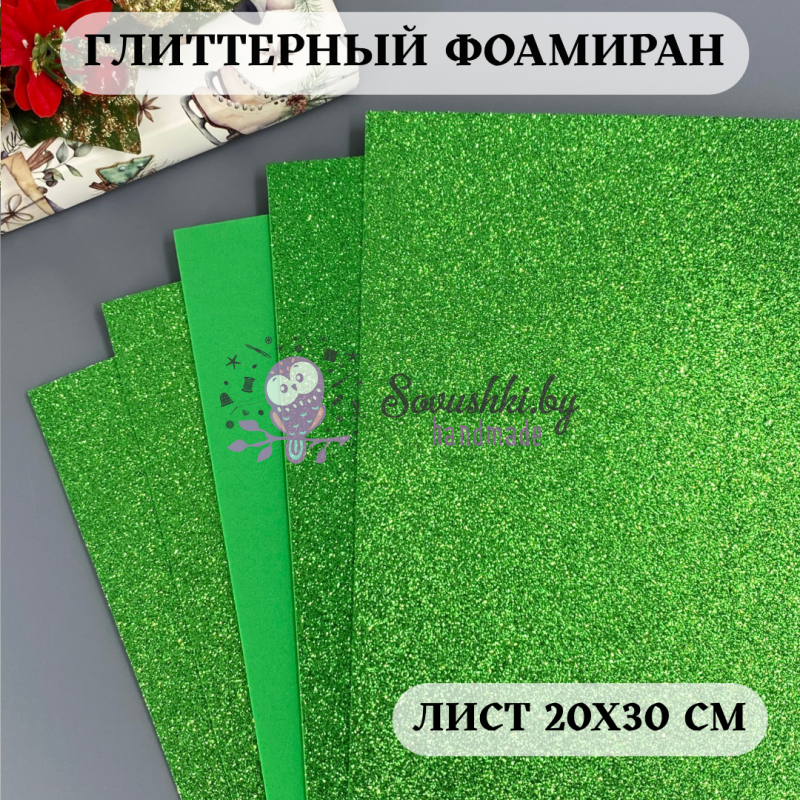 Глиттерный фоамиран 2 мм Premium, светло-зеленый