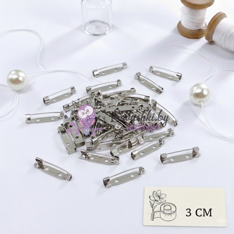 Заготовка для брошек (булавка) 3 см, серебро