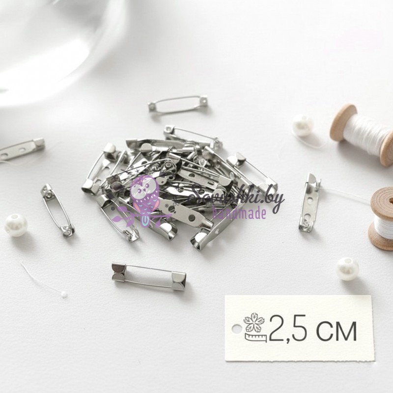 Заготовка для брошек (булавка) 2,5 см, серебро