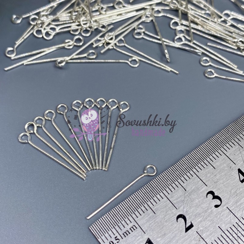 Пины с петелькой 22 мм, серебро (1 уп = 100 шт)