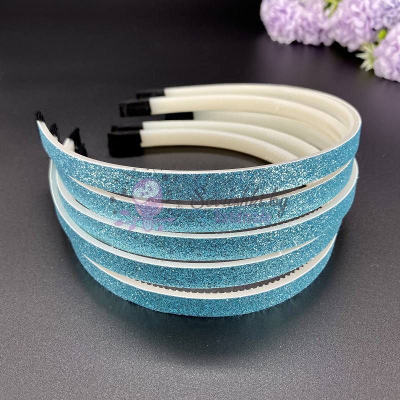 Ободок для волос с блестками (пластик) 1 см, голубой