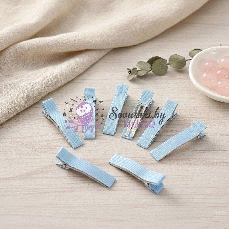 Основа-зажим для заколки с репсовой лентой, голубой (2 шт)