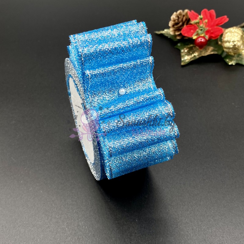 Лента атласная 2,5 см с люрексом, аквамарин/серебро