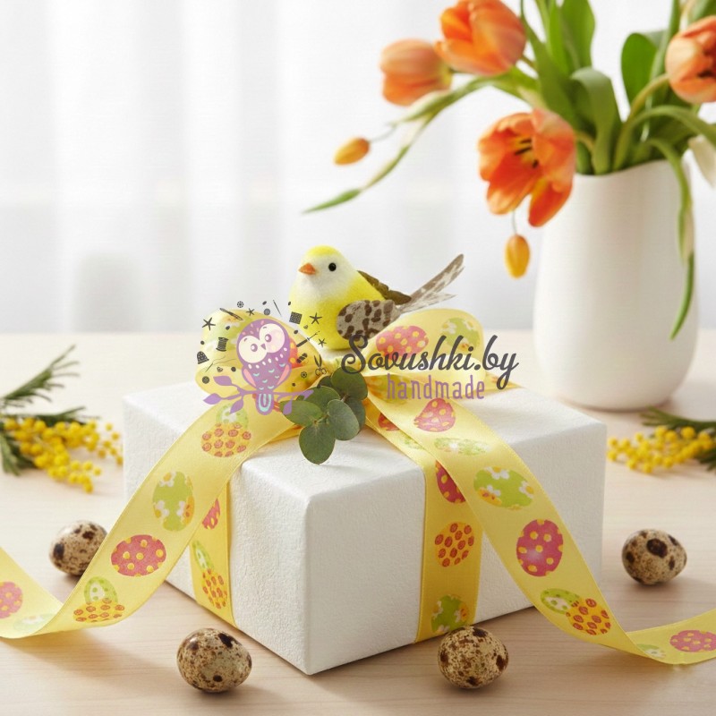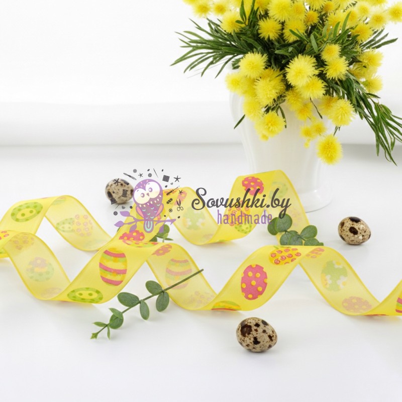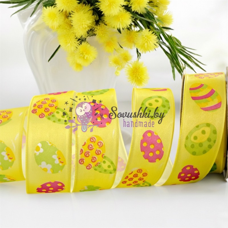 Лента для упаковки подарков и рукоделия "Пасхальные яйца" 2,5 см, желтая