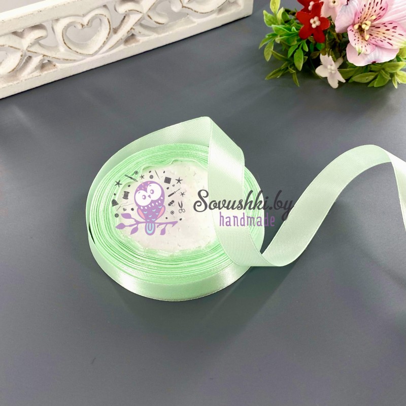 Лента атласная 15 мм, мятный (отрез 17 м)