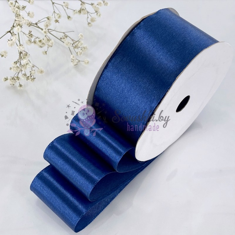 Атласная лента 4 см, синий (095)