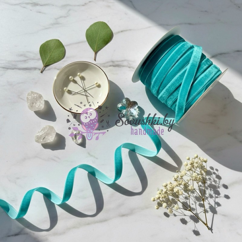 Лента бархатная 10 мм, светло-голубой (5 м)