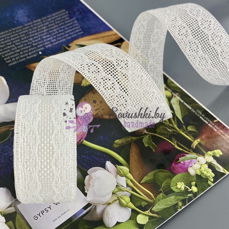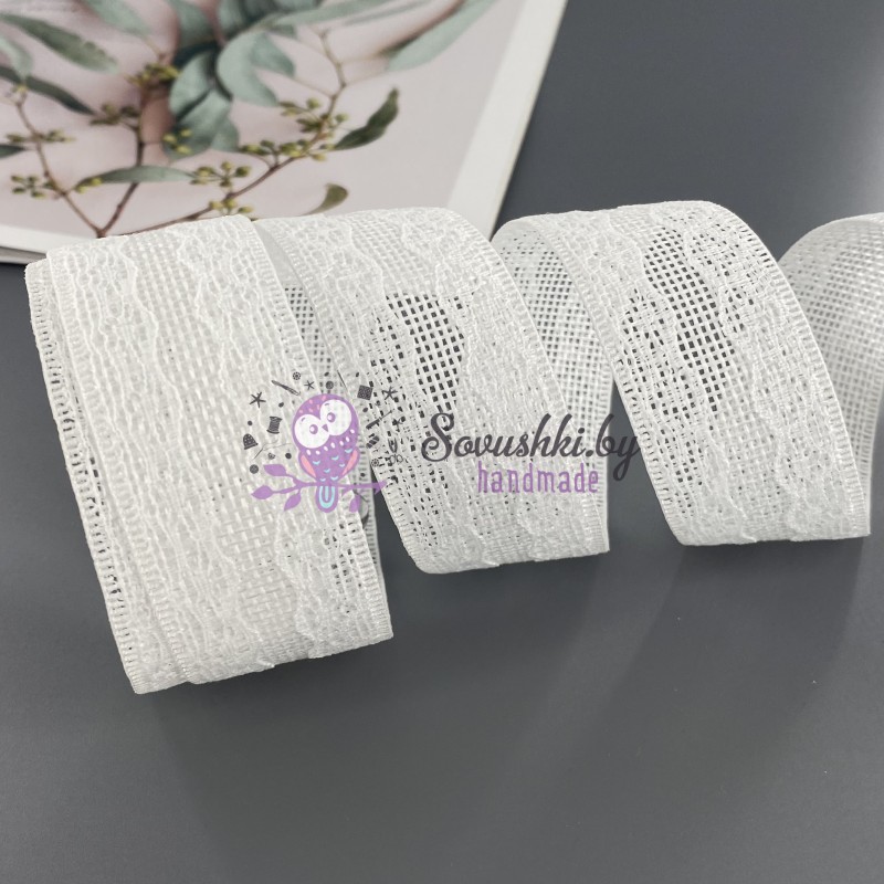 Лента из мешковины с кружевом, белый (отрез 2.3 м)