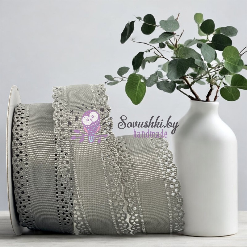 Вельветовая лента с ажурным краем, пепельно-серый