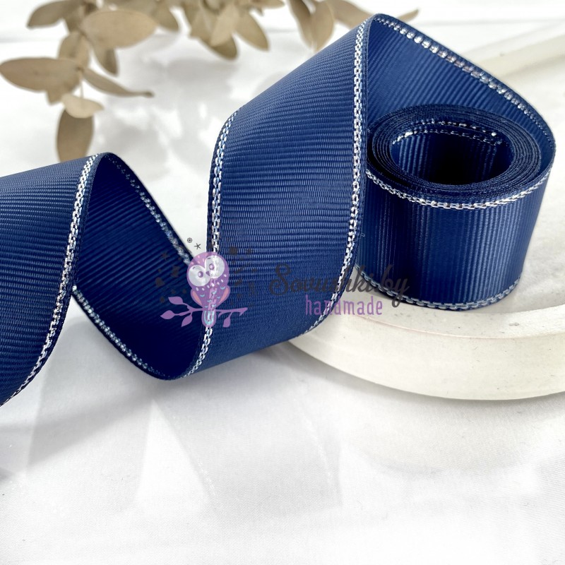 Лента репсовая 2,5 см с люрексом, темно-синий/серебро