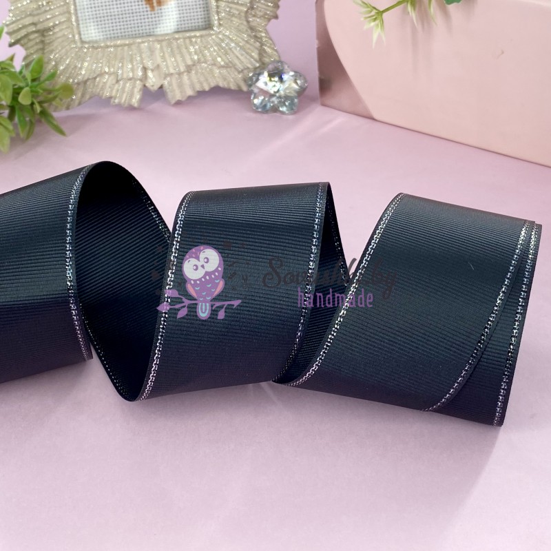 Лента репсовая 4 см с люрексом, черный/серебро (90 см)