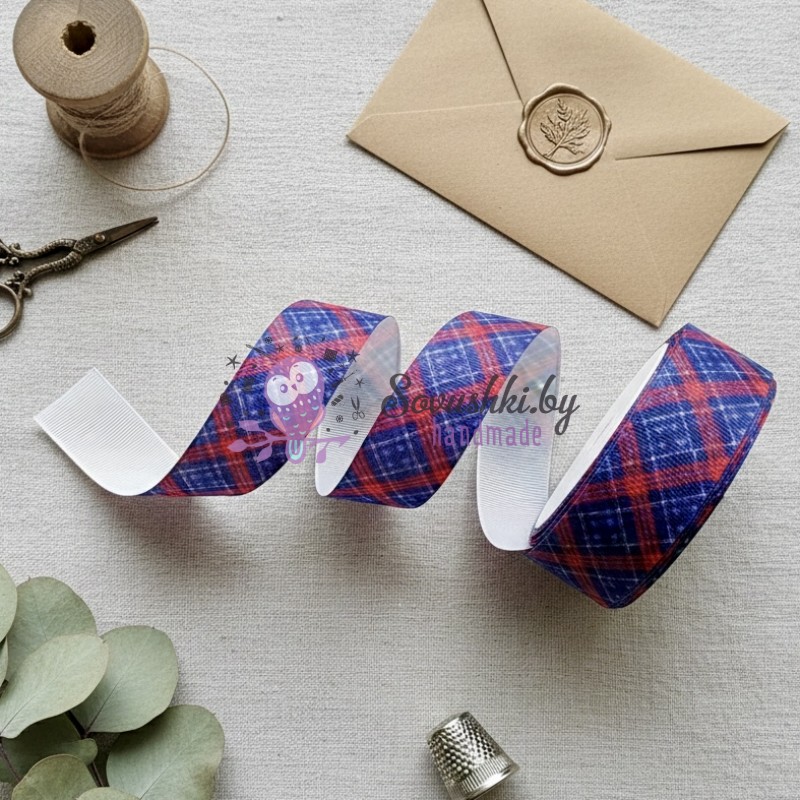 Репсовая лента 25 мм "Ромбики" №1, синий/красный