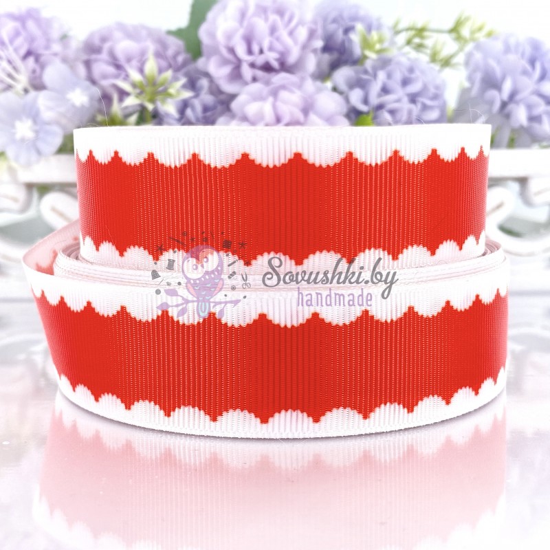 Репсовая лента 25 мм с рисунком, бело-красно-белая