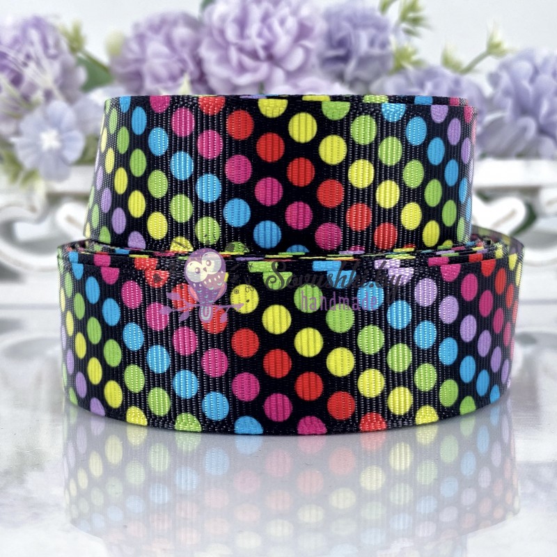 Репсовая лента 25 мм с рисунком "Кружочки мультиколор"