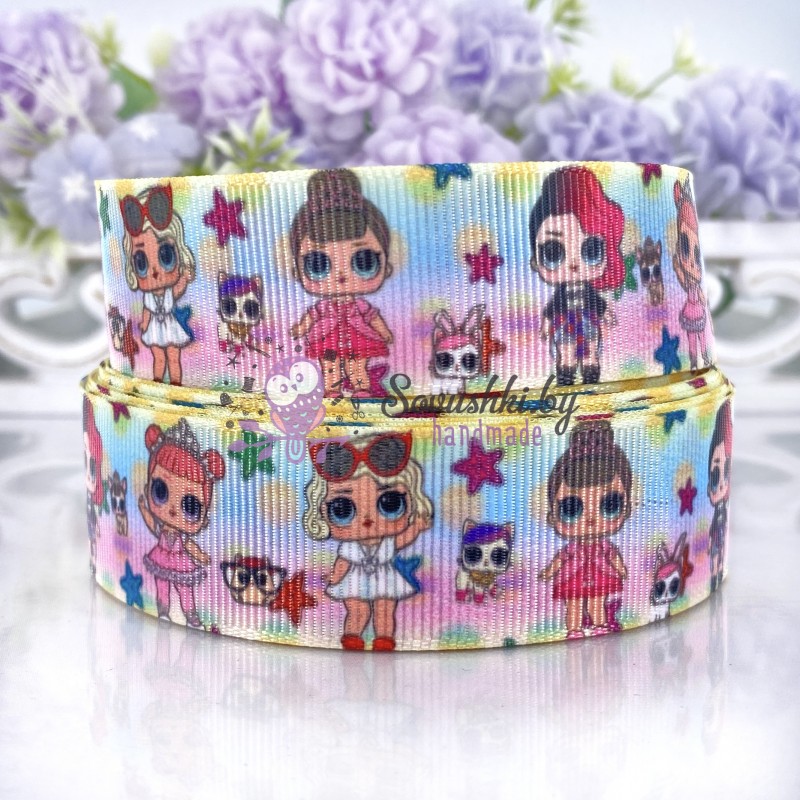 Репсовая лента 25 мм с рисунком "Куколки LOL" (33)