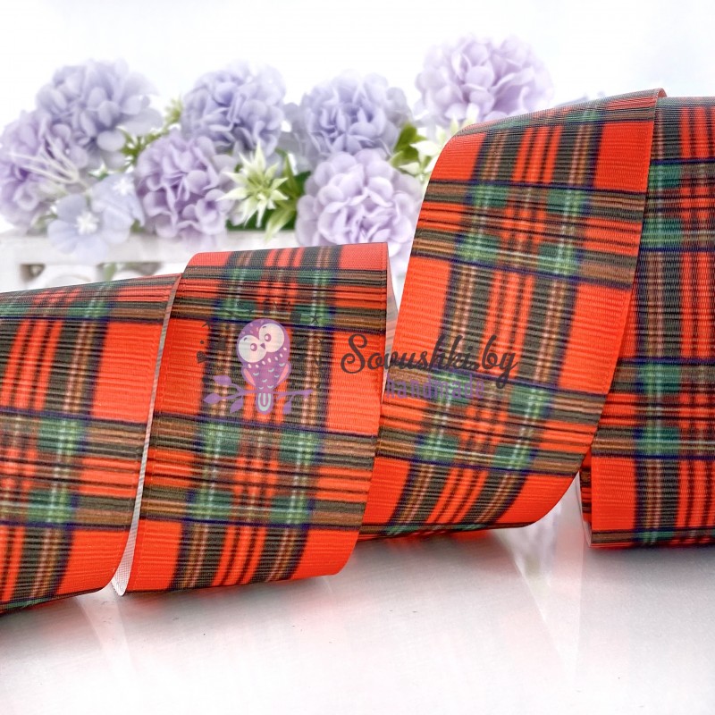Репсовая лента 4 см "Клетка" №1, красный/зеленый