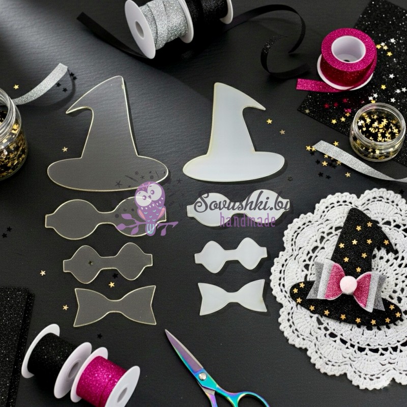 Набор акриловых шаблонов для творчества « Ведьмина шляпка и праздничные банты» (8 элементов)