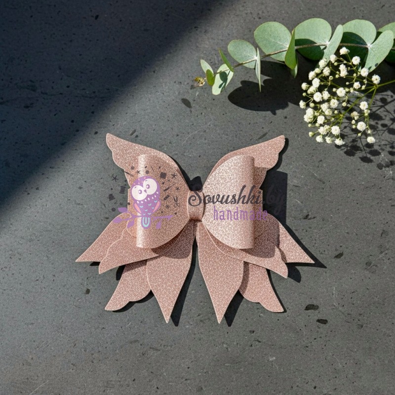 Совет от мастера: Для максимально эффектного вида используйте контрастные материалы. Сочетание матовой экокожи и глиттерного фоамирана сделает бант по-настоящему «дизайнерским».