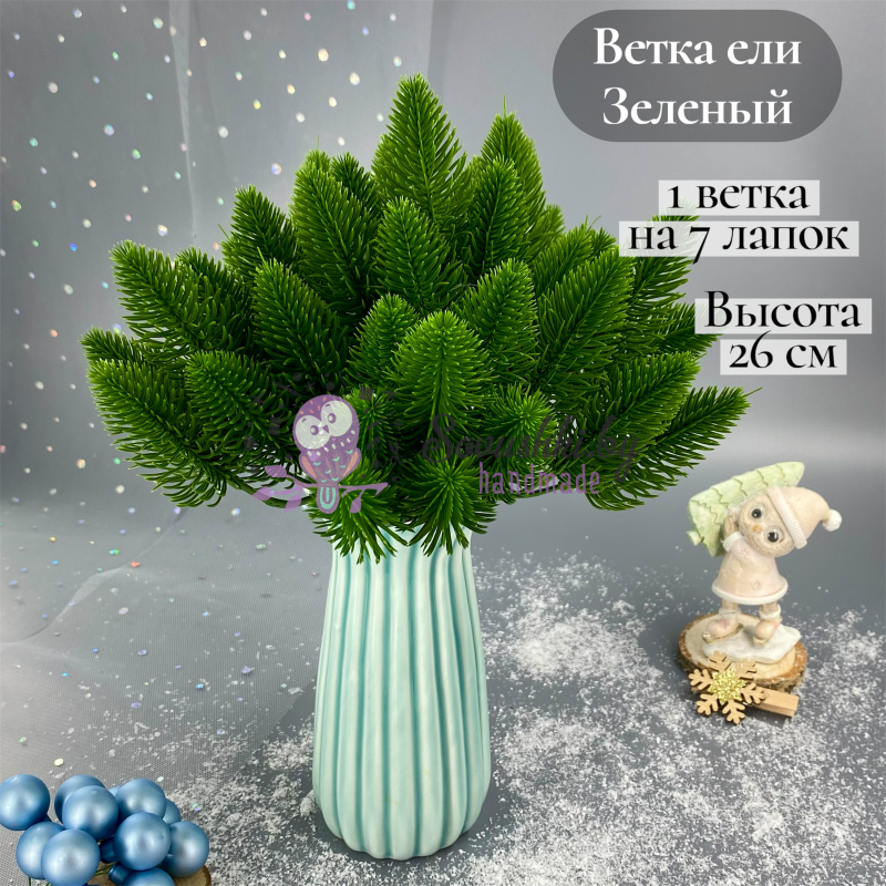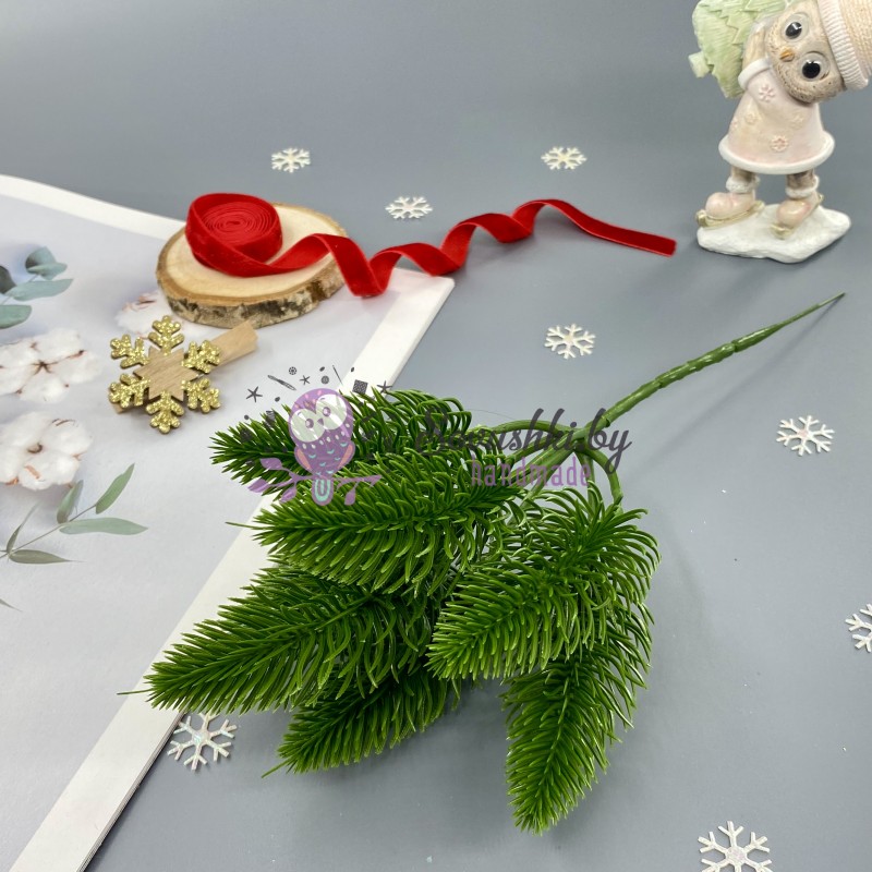 Ветка ели 26 см на 7 хвойных лапок, зеленый