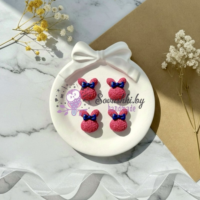Кабошоны текстурные "Зайчики с бантиком" для рукоделия и декора - набор 4 шт (фуксия)