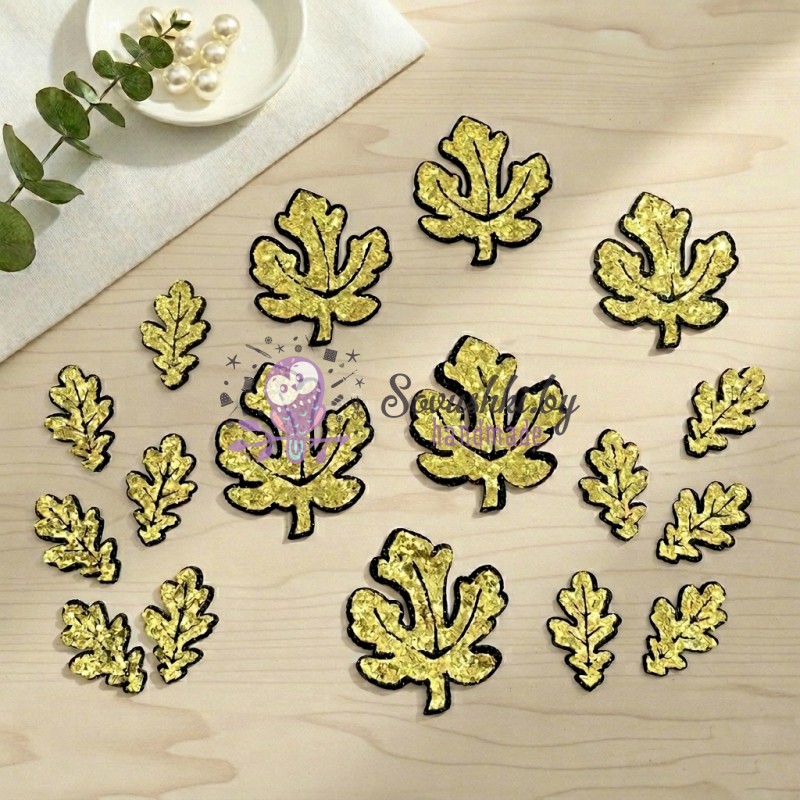 Привнесите частичку природы в свои творческие проекты! Этот набор вырубки в виде дубовых листьев выполнен в классическом золотом цвете с эффектным блеском. Благодаря сочетанию различных фактур и размеров, патчи выглядят объемно и стильно, идеально подходя для осенних и лесных тематических работ.