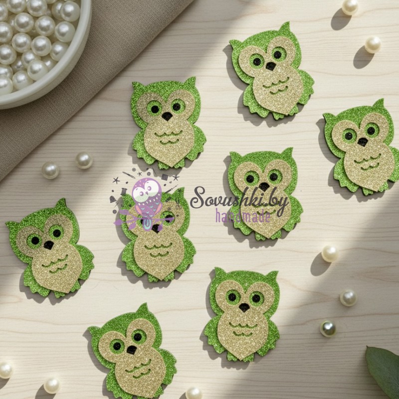 Декоративные элементы (патчи-вырубка) «Совушки» — набор 10 шт (зеленый)