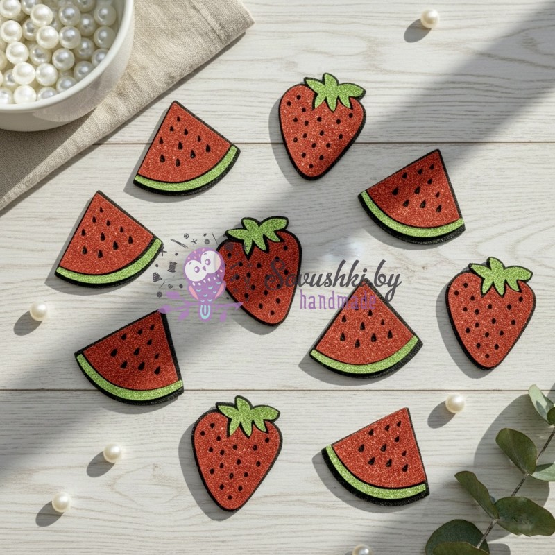 Теги: купить вырубку для творчества, патчи для заколок Минск, фурнитура для бантов, товары для рукоделия Беларусь, глиттерные фигурки арбуз клубникатчичи для рукоделия, патчи для бантиков, патчи для заколок