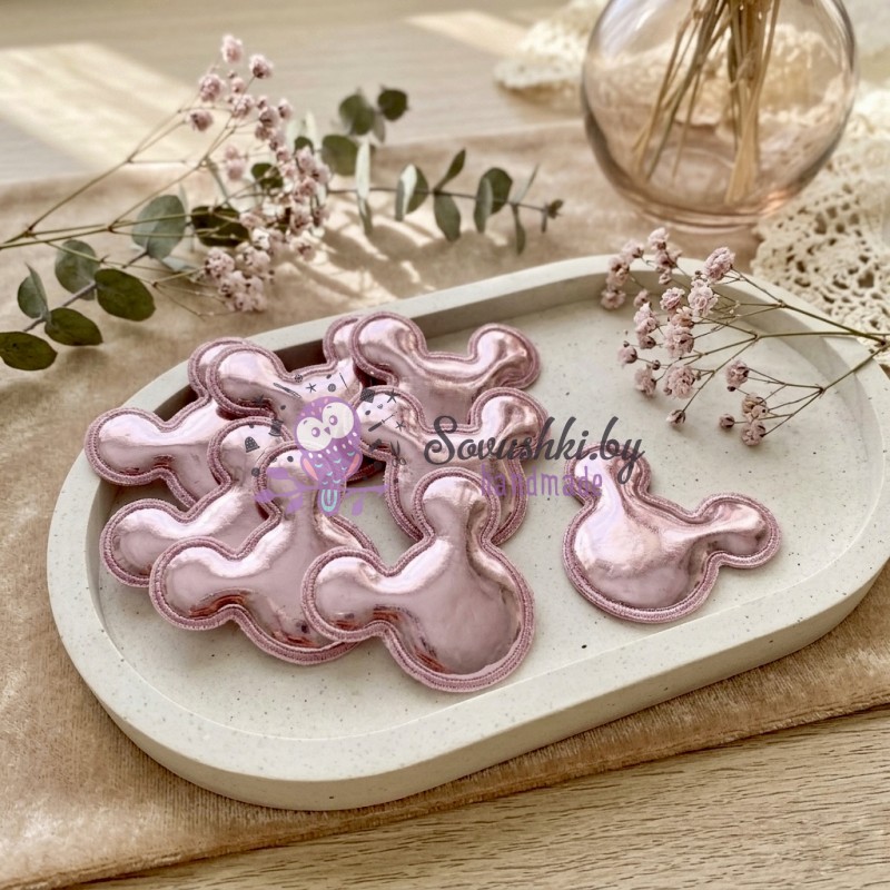 Декоративные патчи для рукоделия из экокожи "Микки" розовый - набор 5 шт.