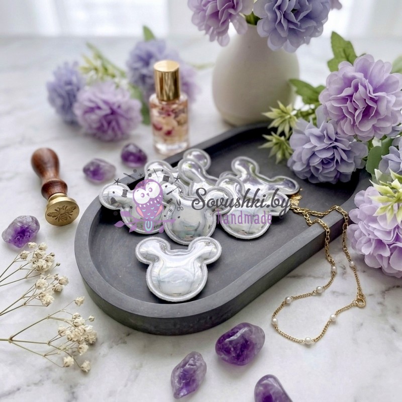 Декоративные патчи для рукоделия из экокожи "Микки" серебро - набор 5 шт.