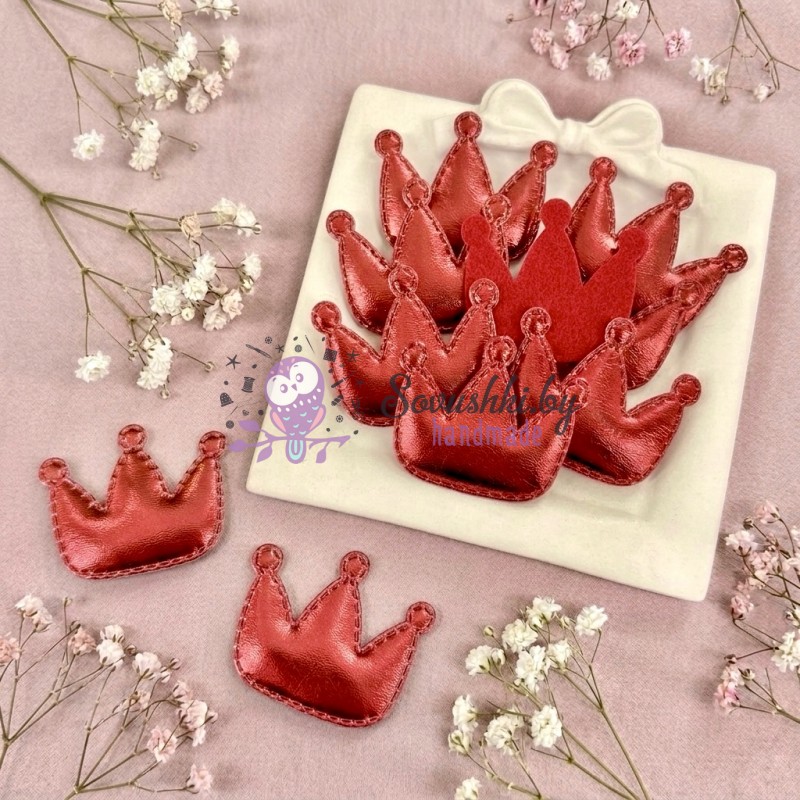 Декоративные патчи для рукоделия «Красные короны» из экокожи - набор 7 шт.