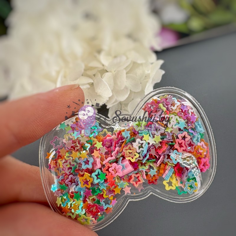 очаровательные прозрачные патчи, наполненные яркими разноцветными звездами,