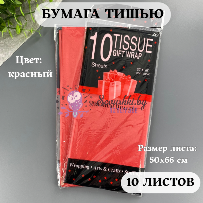 Бумага тишью — незаменимый материал для творчества, рукоделия и стильной упаковки подарков. Наша тонкая, легкая папиросная бумага доступна в широкой палитре цветов — от классического белого и черного до ярких и пастельных оттенков.
