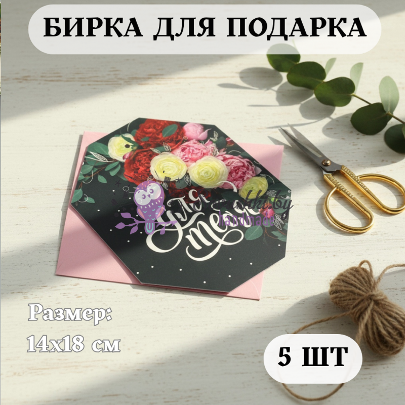Эстетичная бирка "Для тебя" с цветочным принтом 14х18 см (упаковка 5 шт)