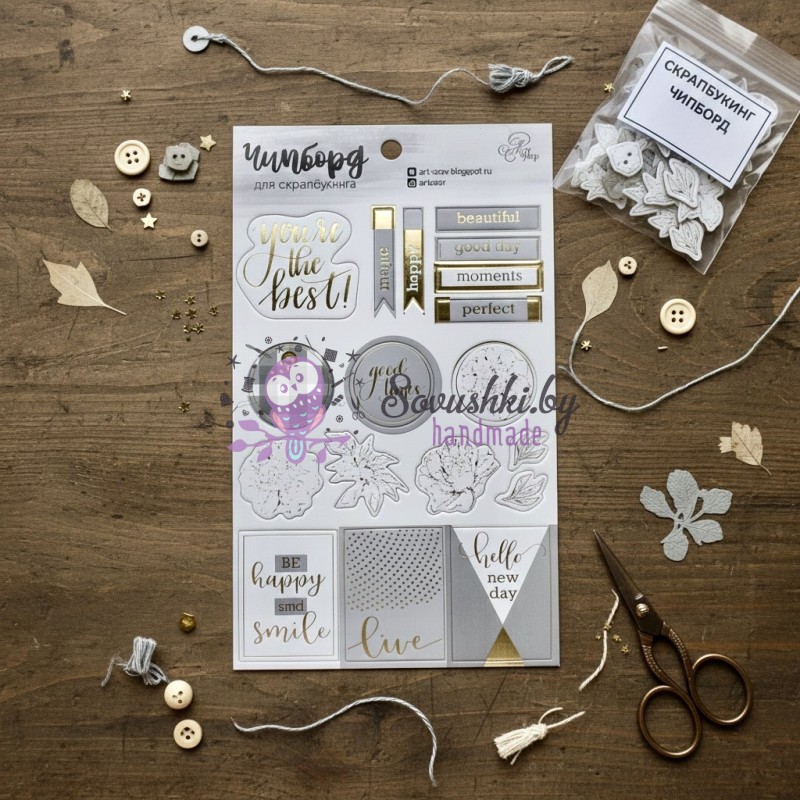 Чипборд — это не просто украшение, это основа для создания акцентов в вашей работе. Фигурки вырезаны из качественного, толстого картона (часто серого или белого цвета), что делает их прочными и долговечными. * Материал: плотный картон, легко поддающийся обработке. * Использование: придает 3D-эффект и объем любому проекту. * Универсальность: подходит для альбомов, открыток, подарочной упаковки, панно и других видов декора.