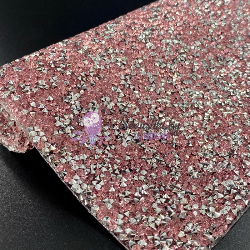 Стразовое полотно на силиконовой основе, светло-розовый/серебро (9*24 см)