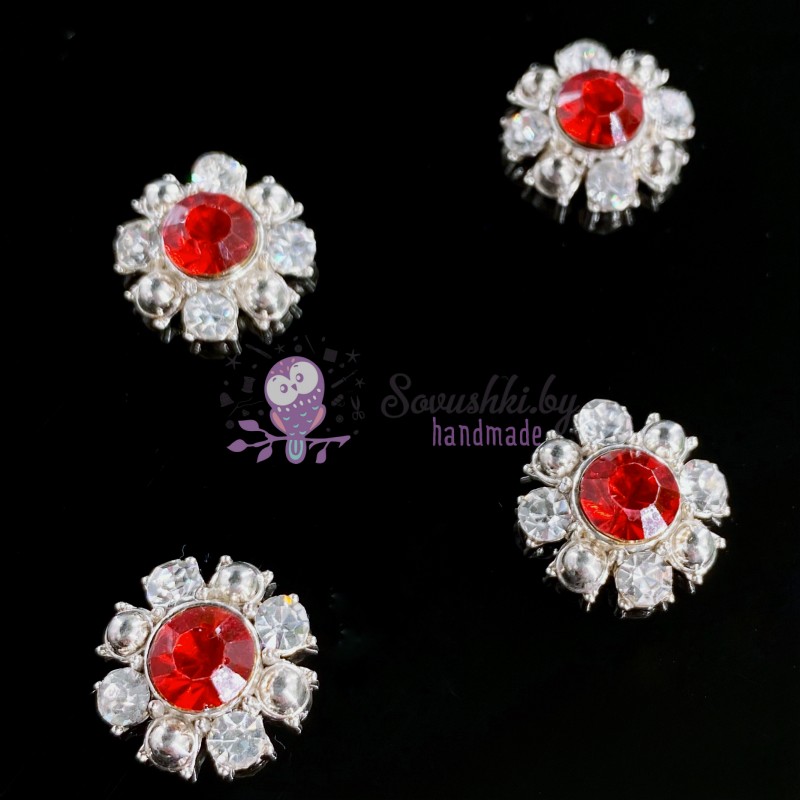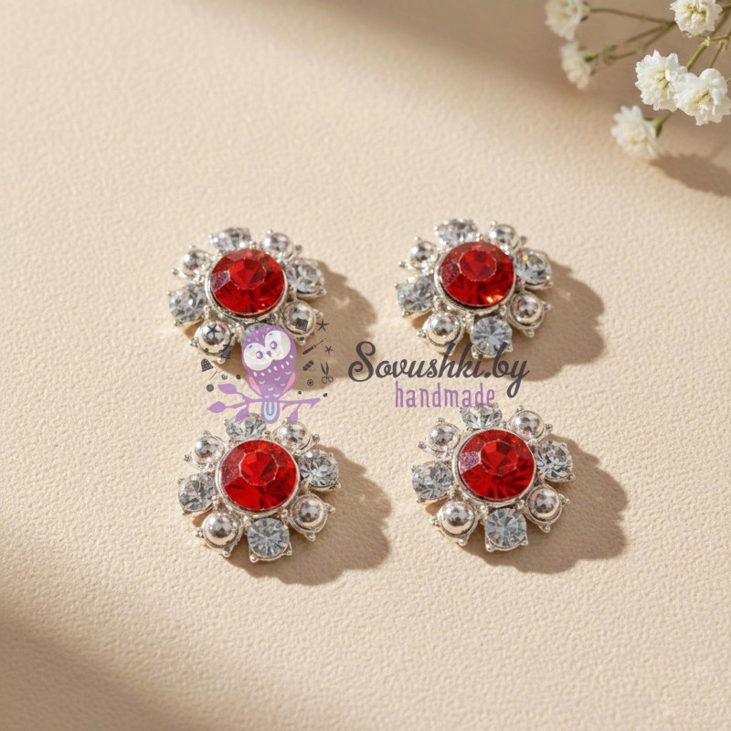 Стразовая серединка "Цветок" 15 мм красный/серебро (2 шт)