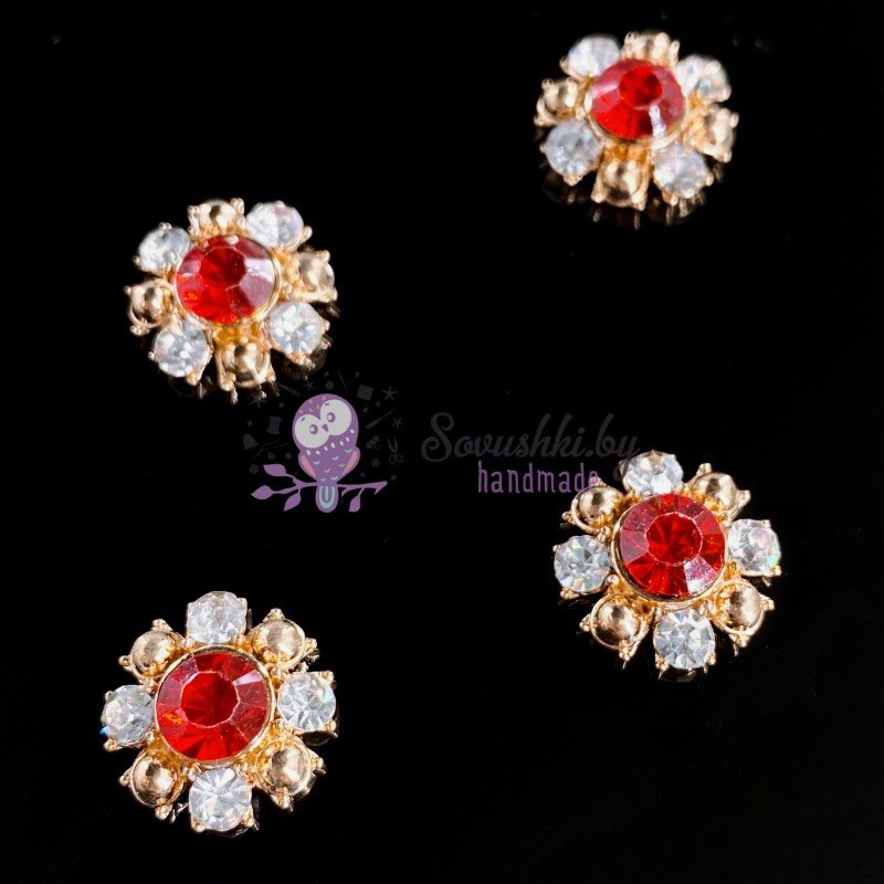 Стразовая серединка "Цветок" 15 мм красный/золото (2 шт)